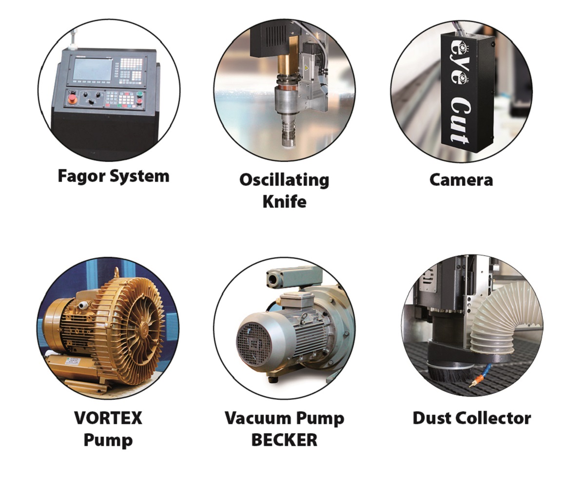 - Type of working table - Bakelite vacum table with T - slots. There is also the option of a separation of vacum table and T - slots. In the basic offer there is a choice of different size table dimensions: 1225; 1530; 2030; 2040.