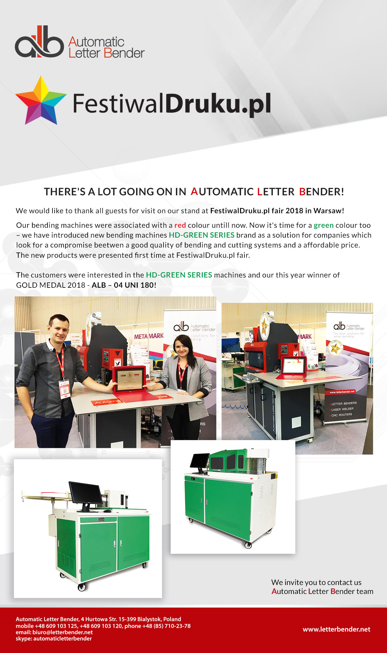 It's a pleaure for us to inform you that one of our famous bending machine - ALB-04 UNI 180 got GOLD MEDAL 2018 of FestiwalDruku.pl fair!