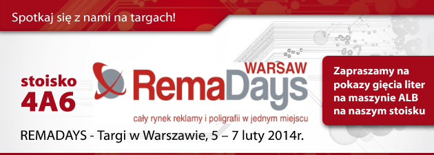 Maszyny Automatic Letter Bender będzie można znalezc w hali nr 4 na stoisku A6. Będziecie mieli Państwo okazję obejrzec pokazy wyginania liter oraz spawania, a także próbki specjalistycznych klejów i wzorniki taśm oraz profili aluminiowych, o które w ostatnim czasie powiększyliśmy swoją ofertę. Serdecznie zapraszamy do odwiedzenia naszego stoiska.